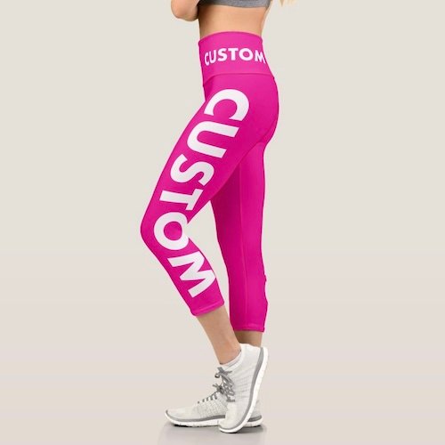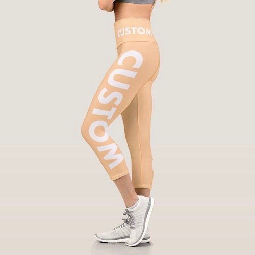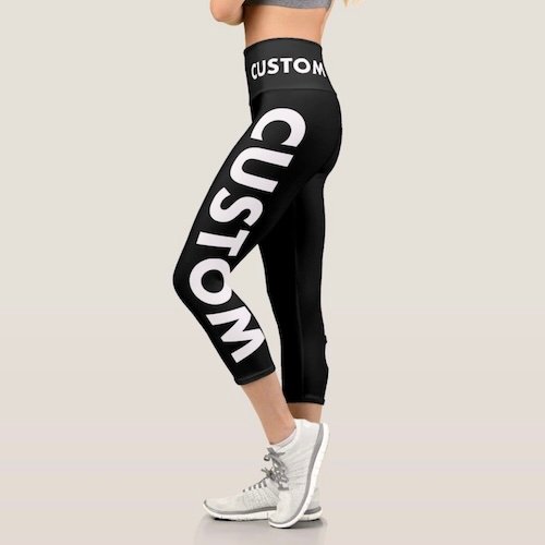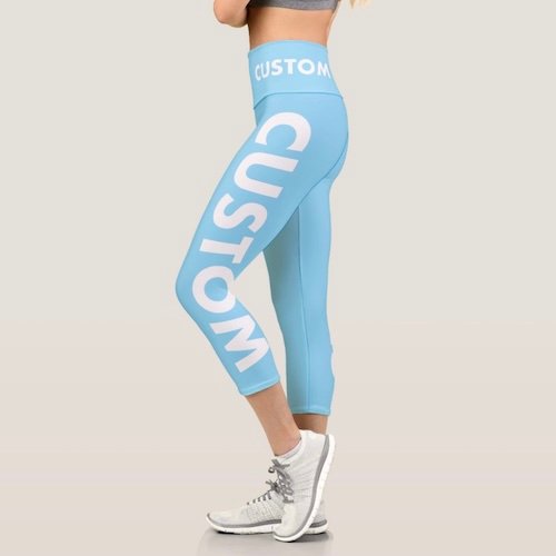 Create your own all over print custom capris with high waistline. Personalize your custom yoga pants with edge-to-edge print, cut, sewn customization of your logo, design, pattern, image, plus hundreds of custom font choices for your personalized text. Choose literally any color (millions of color options) for the background using any color hex code (#). An amazing custom gift for a yoga teacher, yoga student or to promote your yoga studio, gym or fitness business.
