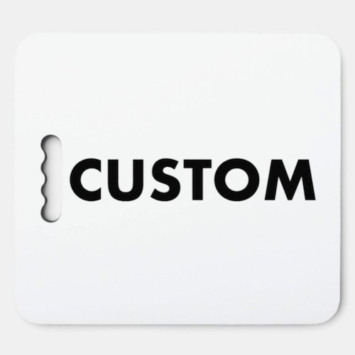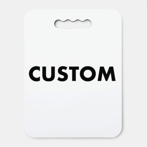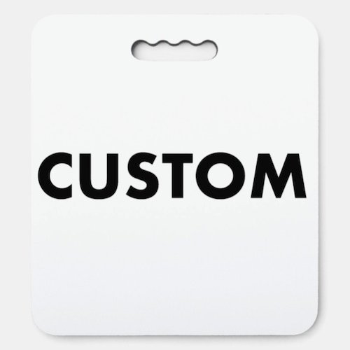 Create your own custom stadium seat cushions. Your logo, photo, and personalized text on a custom padded cushion, made of neoprene, for all weather seating comfort.